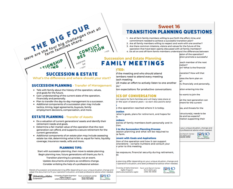 This 5-page PDF resource was created in partnership with University of Idaho Extension to support farmers and ranchers in their succession and estate planning process.