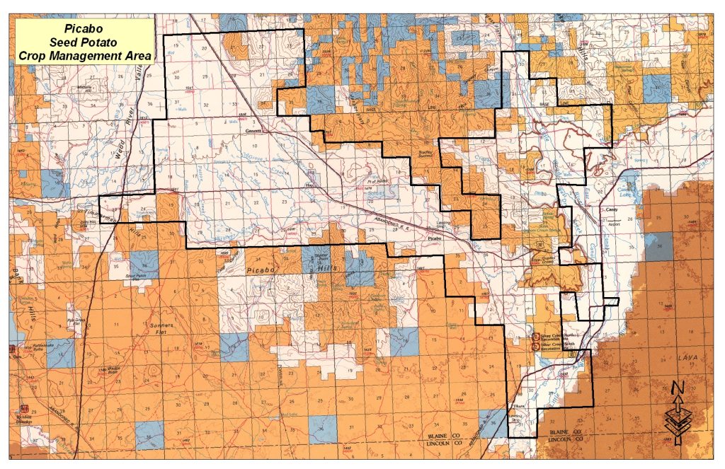 Picabo Seed Potato Crop Management Area: That portion of Blaine County, Idaho beginning